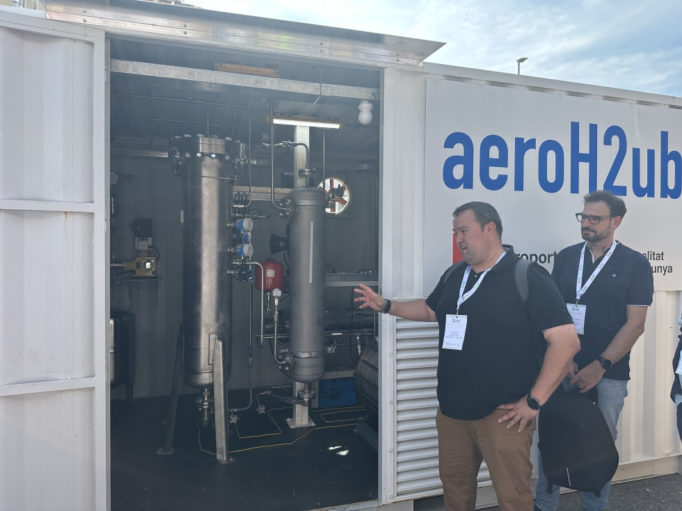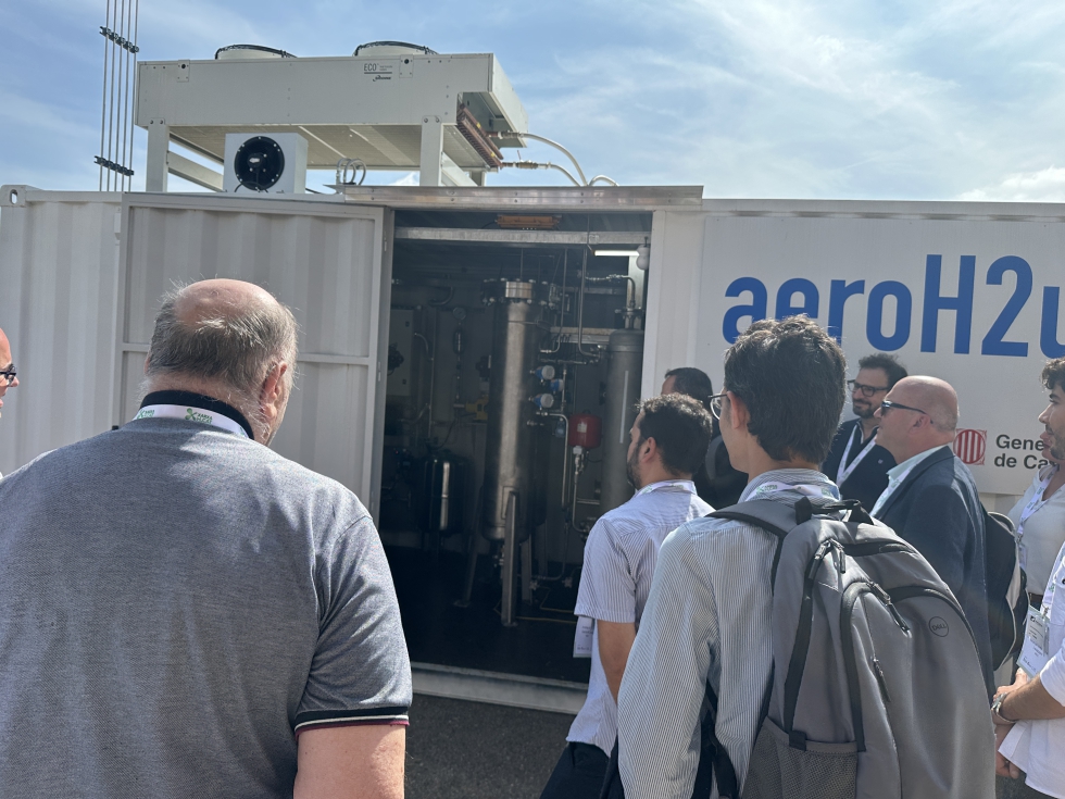 La jornada organizada por la red H2CAT en aeropuerto de Alguaire – Lleida, con la colaboración de Aeroports de Catalunya, el Clúster de l’Energia Eficient de Catalunya y ACCIÓ, la agencia para la competitividad de la empresa, contó también con la presentación de proyectos innovadores por parte de Vueling, la Universitat de Lleida, la Universitat Politècnica de Catalunya y las empresas Indox Energy Systems y APPLUS, además del proyecto de Eurecat sobre nuevos combustibles, y una visita a las instalaciones del aeropuerto de Lleida-Alguaire para conocer el proyecto aeroH2ub, con su electrolizador y la hidrogenera instalados.