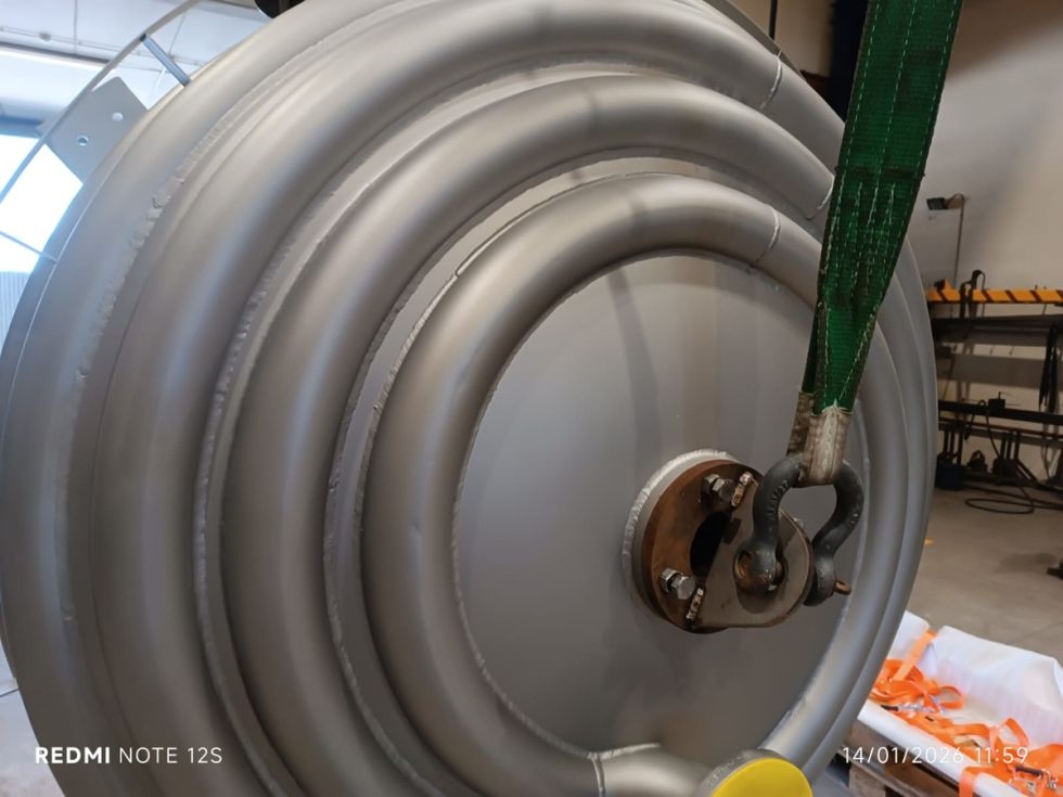 | Detalles | Fabricado en el año 2020. Nunca se ha utilizado ni se ha llegado a instalar. Material en Inox-316L. Con media caña tanto en el cuerpo como en el fondo inferior. Fondo superior Klopper con boca de hombre y diversas tubuladuras. Fondo inferior Klopper con salida centrada. Agitación tipo áncora con motorreductor de 4Kw a 43rmp y para zona clasificada II 2G h IIB T4 Gb X. Sobre 4 cartelas. |