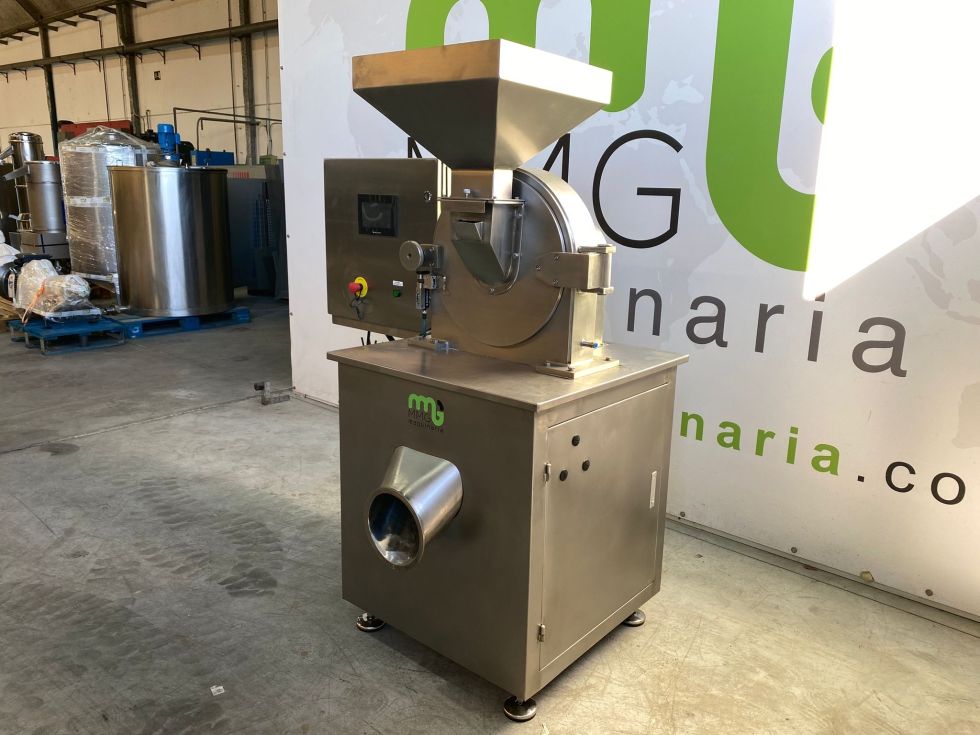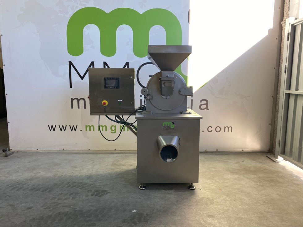 | Detalles | Molino triturador mediante martillos fabricado íntegramente en acero inoxidable; con posibilidad de modificar, en cualquier caso, la granulometría final. Tolva de recepción en forma de embudo, motor bajo estructura en acero inoxidable, quedando así el molino totalmente equipado en un espacio menor. Incorpora un cuadro eléctrico diseñado a medida para realizar el proceso deseado mediante un PLC con recetas; incluye un variador de velocidad para el molino y un sistema de seguridad mediante un pestillo eléctrico que evita abrir la puerta con el equipo en marcha, todo comandado desde el cuadro eléctrico. Opciones Potencia del motor: 5’5 kW Producción: 300 kg/h |