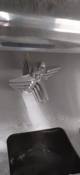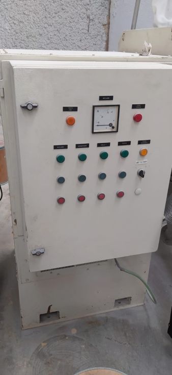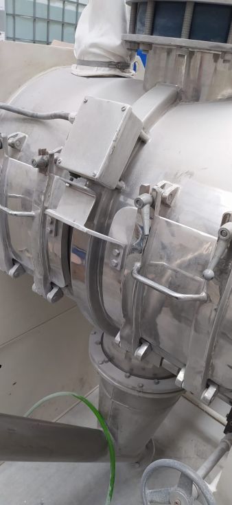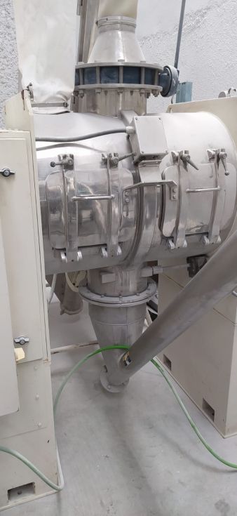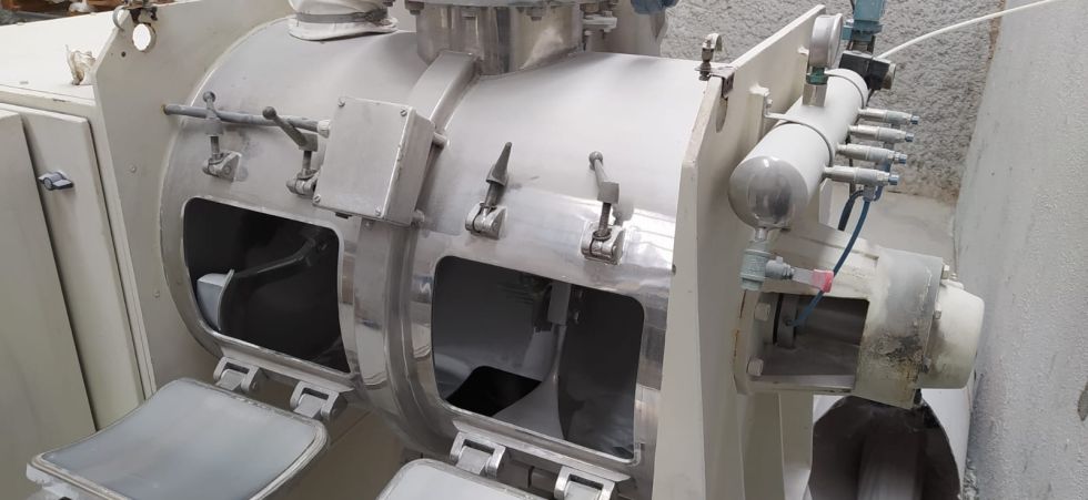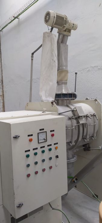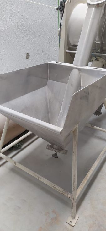 | Detalles | Construido por BACHILLER. Actualizado en 2011. Partes en contacto con el producto en Inox-316. Mezcla mediante palas tipo “pico de arado” con intensificador. Pulido interior. Dos compuestas frontales de registro. Manga de venteo para evitar nube de polvo. Bancada soporte en acero al carbono. Cuadro eléctrico de control del mezclador y del elevador sinfín. Incorpora una tolva con elevador sinfín de producto. |