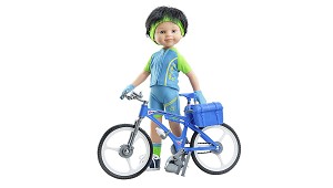 Muñeco Carmelo ciclista de la colección "Las Amigas" Profesiones Fabricada en vinilo. 32 cm de alto. Paola Reina Ref. 04659 - Muñecas Paola, S.L.