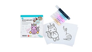 artísticas. - Pintar divertidos unicornios y decorar tu habitación. - Fácil de usar. Fácil de limpiar. - Las pegatinas 3D de Sticker Art permiten crear con pinturas líquidas, divertidos vinilos translucidos con los que decorar