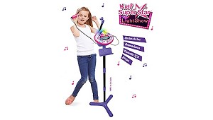 Micrófono karaoke electrónico Modo música, 8 canciones, conexión externa, luces, voces, grabadora, juegos, aplausos y ovaciones y altavoz incorporado Vtech Kidi SuperStar LightShow - Vtech Electronics Europe, S.L.