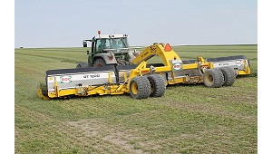 diferentemente de otros rastrillos, puede ser utilizado en dirección invertida o frontalmente al tractor (solamente para su utilizo en el campo). Estas diferencias permiten: Inferior descamación y contaminación del producto