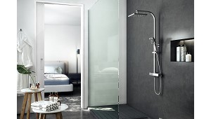 flexo de ducha de 1,5 metros en acabado inoxidable cromado con caída vertical. También cuenta con un cuerpo termostático con inversor y con cartucho termostático. Características técnicas: Fabricada en latón