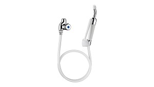Flexo armado de PVC blanco opaco HH1/2" L.0,80 m. Mango de ducha hospital con tirador estándar con boquilla desmontable e inclinada a 30°. Soporte mural blanco con tornillo. Garantía