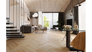 HD Mineral Core es lo que eleva tu suelo al más alto nivel de calidad. Los paneles de suelo de la colección Amaron Herringbone fueron diseñados específicamente para imitar el parquet