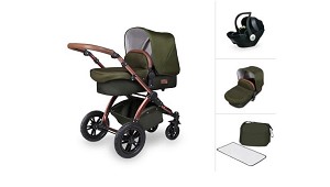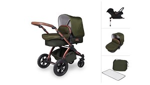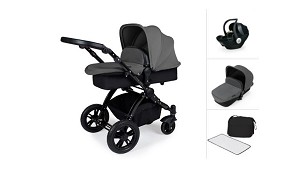 cambiador, una funda para el capazo, una colchoneta, un saquito y dos parasoles para las ventanas del coche. Disponible en negro, bosque o arándano. (Cochecitos combi de 2 ó 3 piezas)
