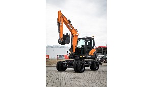 parasol y retrovisor lateral. La DX57W-7 está propulsada por el motor Doosan D24 Fase V de 42,5 kW (57 CV). Equipada con las ruedas sencillas de serie, el peso