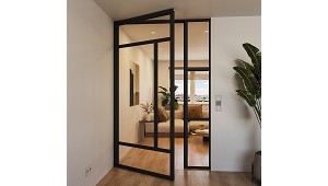 Sistemas de aluminio para interior para la creación de divisorias o separadores interiores y puertas pivotantes de 1 o 2 hojas Thermia Soho Pivotante - Thermia Barcelona - Accesorios Dimac, S.L.