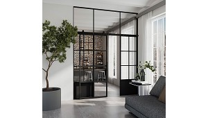 Sistemas de aluminio para interior para la creación de divisorias o separadores interiores y puertas correderas de 1 o 2 hojas de estilo industrial Thermia Soho Corredera Industrial - Thermia Barcelona - Accesorios Dimac, S.L.