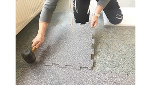 basta con encajar las baldosas unas con otras utilizando un mazo de caucho. Al contrario de los suelos deportivos tipo parquet o resinas, muy afectados por la humedad y la acidez