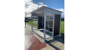 lacado en polvo Rural - Representaciones Martín Mena, S.L.: Marquesina para parada de autobús, modelo Rural. Fabricada en acero galvanizado con imprimación anticorrosiva y acabado lacado en polvo, RAL 7035 texturado