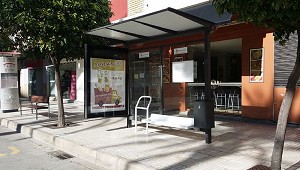 lacados al horno y de gran resistencia New Enix V - Representaciones Martín Mena, S.L.: La marquesina autobús mod. New ENIX V, sus dimensiones son de 3000×1500 con bancos cómodos