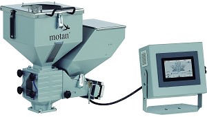 pantalla gráfica de 7" visualiza las velocidades de dosificación y facilita la calibración. La velocidad de dosificación se calcula automáticamente según el peso y la receta calibrados. (Dosificadores para plásticos)