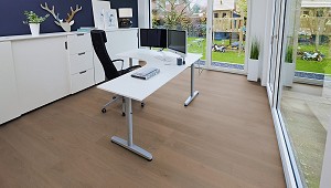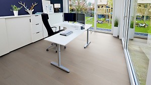 creando una gran iluminación. El cepillado intenso juntamente con aceite natural acentúan la naturalidad de la superficie. El resultado son contrastes para un ambiente elegante. (Pavimentos y revestimientos de madera, parquet)