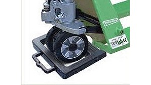 volcado hacia uno de los lados, etc. Simplemente se debe colocar la rueda timón en el Truck Stop, y en menos de dos segundos la transpaleta quedará completamente inmovilizada y segura