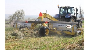diferencia principal respecto al sistema de hilerado tradicional esta representada para el sistema de recogida: el RT 630 carga el producto para transportarlo sobre una cinta transportadora, mientras que los rastrillos