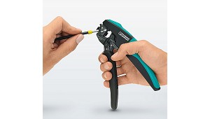 Basta con presionar el botón de desbloqueo situado en la parte superior y dirigir la matriz hacia la posición necesaria Phoenix - Phoenix Contact, S.A.: La herramienta Crimpfox DUO 10 de Phoenix