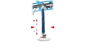 instalar en la parte delantera o lateral, mientras que la rueda guía hace que el manejo sea simple y seguro. Se pueden conectar hasta cuatro toldos al poste central para