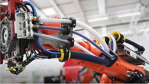 muelles o tensores pueden ser molestas al guiar los elementos de suministro de forma aérea hasta el eje 6 o muñeca del robot. Realizar una instalación inicial de estos materiales