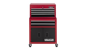 armario superior e inferior y se puede organizar a su gusto. Mantener el orden en las herramientas nunca ha sido tan fácil. El taller móvil tiene 4 ruedas giratorias y, por lo tanto