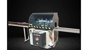 CNC - Tronzadoras MG, S.A.: TL-500-AA CNC Máquina automática de corte de aluminio con programación de longitud y grados -45º / 90º /+ 45º: - Disco de corte TCT de 500 mm diam