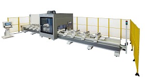 controlados por CNC (X, Y, Z, C, A) y está diseñada para procesar perfiles de aluminio de grandes secciones transversales con fines industriales. (Centros de corte y mecanizado para aluminio)