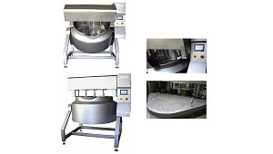 purgador y electroválvula de seguridad). Opcional: - PLC con pantalla táctil para la programación y actuación de la máquina: programa para recetas, aviso acústico finalización programa. - Contador de litros. - Triturador. (Marmitas)