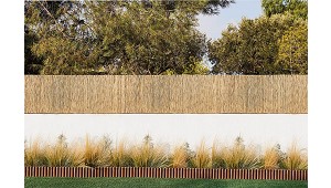 terraza u otros entornos exteriores. El cañizo es un material natural muy longevo que, al ser tejido con caña entera del país y alambre galvanizado, se convierte en el cerramiento