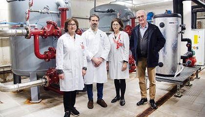 HUN; Javier Gómez-Arrue, director de Navarrabiomed-Fundación Miguel Servet; Estrella Petrina, directora gerente del HUN; y Fermín Román Iriarte Artajo, jefe del Servicio de Infraestructuras del HUN. El equipo