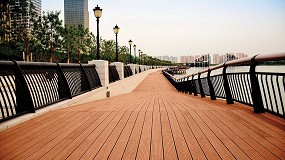 tarimas de exterior, al combinar ventajas de las tarimas de madera tropical con ninguno de sus inconvenientes. La tarima de la imagen es de Dasso, distribuida por Distiplas Floors / Maia