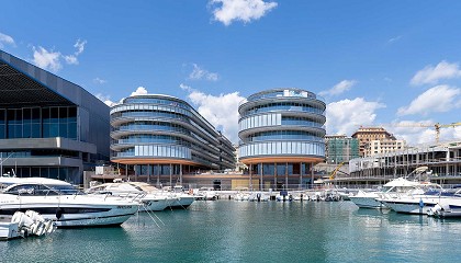 tejido Satiné 5500 en el proyecto Waterfront di Levante - 27/05/2025: Los estores se convirten en una parte integral de la arquitectura del edificio Mermet aplica su tejido Satiné 5500 en el proyecto