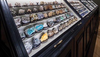 Vitrina Museo Nacional de Praga con vidrio Clearsight. Con una capacidad de reducir los reflejos hasta menos del 1 %, frente al 8 % de los vidrios convencionales, Clearsight proporciona