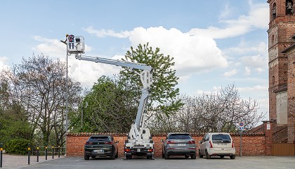 GLP y gasolina. Plataforma sobre camión con una altura de trabajo de 16,90 m, un alcance horizontal de 7,50 m, up&over a 6,8 m y una capacidad