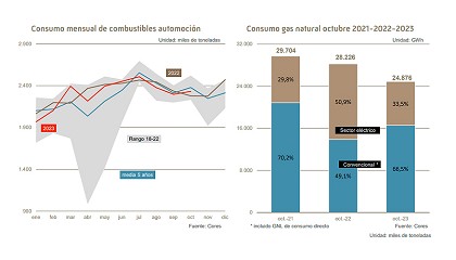 GLP (5,3%) y fuelóleos (4,7%). En el acumulado anual, el consumo de los combustibles de automoción asciende, de acuerdo con los datos de la corporación. En comparación con los datos