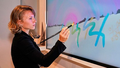 Samsung para el sector educativo. Esto incluye pizarras interactivas y rotafolios digitales que funcionan incluso sin conexión a un ordenador; tabletas Galaxy para el trabajo individual y la discusión en grupo
