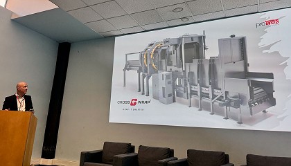 anillo giratorio de Cross Wrap, diseñado para manejar balas con ataduras verticales, horizontales o cruzadas. Su diseño permite adaptarse a configuraciones complejas, mejorando la seguridad y eficiencia del proceso. Este