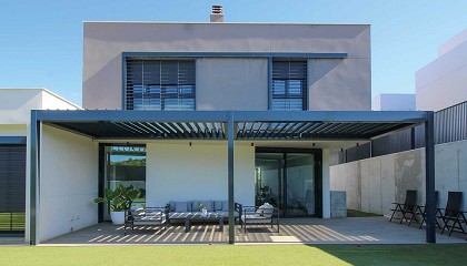 autoportante DGlass 26X, un sistema de techo móvil con estructura de sustentación incluida. Permite incorporar las correderas y cortinas D'Glass, para cerrar el techo y poder disfrutar de un espacio