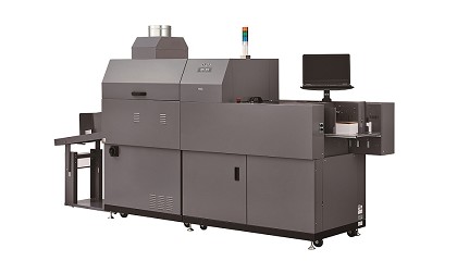 Barnizadora UV Duplo DuSense Sensory Coater. Entre los equipos que tienen un lugar destacado en el stand de EMG se encuentra la Duplo DuSense Sensory Coater, una barnizadora UV con reserva