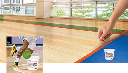 barniz 2K. Esto lo hace perfecto para rellenar o pintar nuevas líneas en suelos ya instalados sin tener que recubrir la superficie. Características a destacar • Inmejorable opacidad o capacidad de cubrición