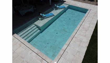 calefactor el agua de la piscina se han instalado placas solares, lo que nos permite tener el agua perfecta para un buen baño. Una buena iluminación no puede faltar si queremos