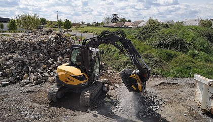 césped en los jardines del Castillo de Versalles. Una empresa especializada en el cuidado del paisaje eligió una pinza seleccionadora MB-G350 de instalar en su miniexcavadora Bobcat E27 para
