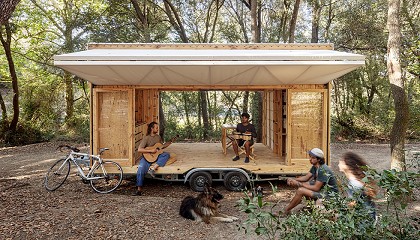 colchón extensible que garantiza un espacio para 2 personas. Mientras que una escalera móvil, sujeta al borde del somier, puede inclinarse para facilitar la accesibilidad. La cocina está equipada con un fregadero