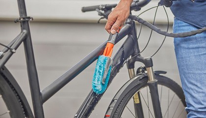 cuña está especialmente diseñada para llegar perfectamente a los radios de la bicicleta y garantizar así una limpieza efectiva. Al conectarse a la manguera Liano Life, incluida en el set, el flujo