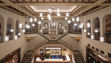 dorado y latón, remiten a la estética 'mid-century' de alta gama que atraviesa el proyecto, mientras que los espejos estratégicamente ubicados amplían la percepción espacial y multiplican la luz, evocando
