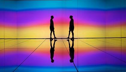 espejos de seguridad laminados, acero inoxidable, vidrio y sonido, creando entornos inmersivos donde la luz transforma el espacio y multiplica la percepción. El eje central del trabajo de Valdés es la investigación
