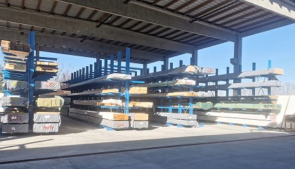 estanterías que utilizaba anteriormente, parcialmente autosoldadas, por un sistema de estanterías profesional de Ohra . Gracias a su capacidad de carga, las estanterías cantiléver no solo brindan una mayor capacidad de almacenamiento