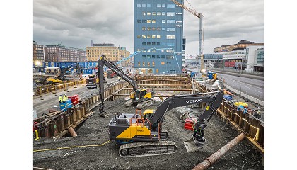 Frank, director de Investigación de Volvo CE, con la excavadora conectada a la red de Volvo CE. Foto: Electric Worksite. “Las máquinas eléctricas ya están disponibles en el mercado y funcionan