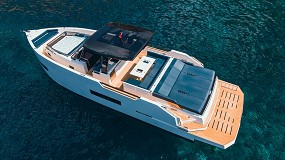 fregadero de acero inoxidable y amplios armarios. Innovador flybridge con acceso ininterrumpido de proa a popa. El amplio flybridge fluye a la perfección hacia la cubierta de proa con un acceso